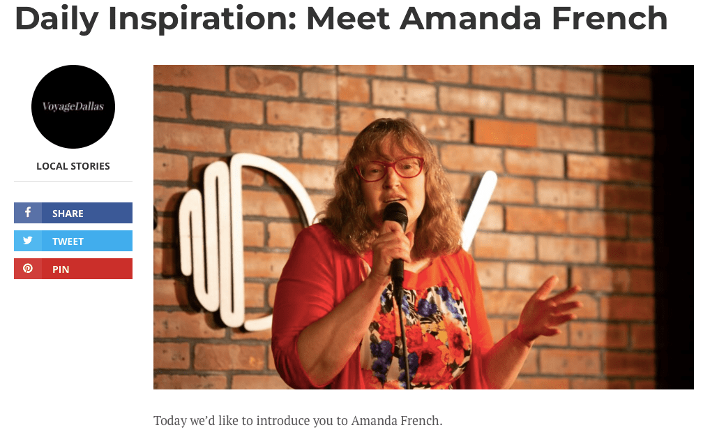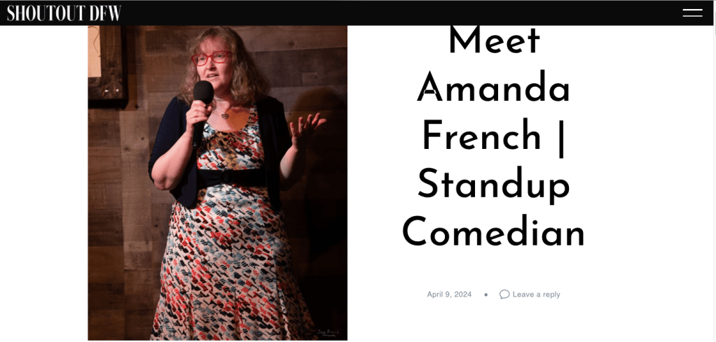“If you’re looking for a comedian who can make you laugh while also leaving you feeling good, Amanda French is definitely worth checking out. Her comedic talent is undeniable, and her refreshing perspective is a welcome addition to the comedy world. She is an amazing hostess as well.”